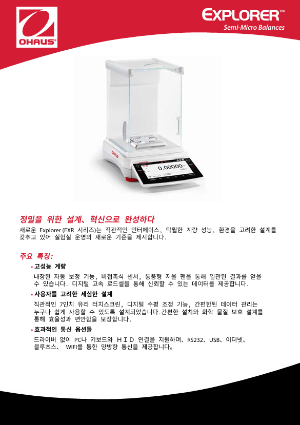 새로운 Explorer EXR 시리즈는 직관적인 인터페이스, 뛰어난 계량 성능, 친환경 설계를 제공합니다. 차세대 Explorer는 연구실 운영의 새로운 기준을 제시합니다.