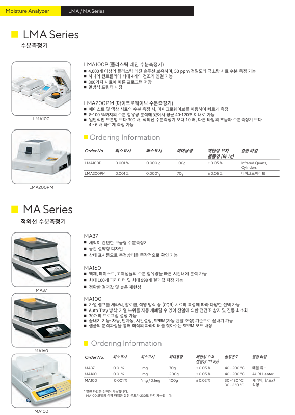 LMA Series 수분측정기 / MA Series 적외선 수분측정기