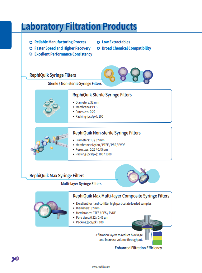 RephiQuik 비 멸균 주사기 필터는 분석 시료 전처리를위한 빠르고 효율적인 도구입니다.