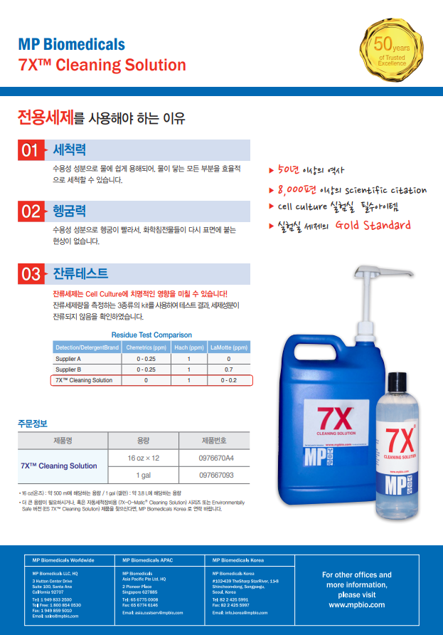 7X 세척 솔루션은 산업 및 실험실에서 기구, 유리 제품, 용기 등을 안전하고 효과적으로 세척 하기 위해 개발되었습니다.
