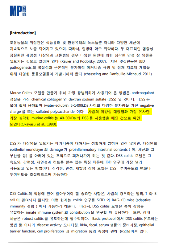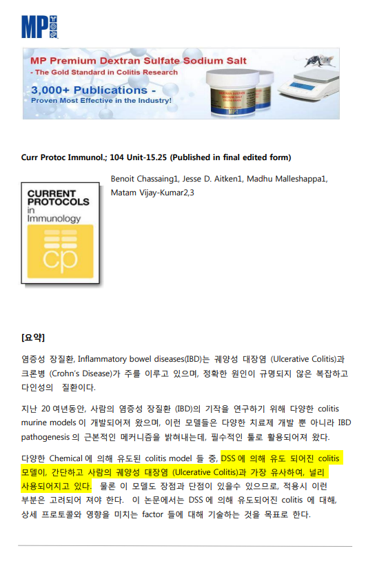 덱스트란 황산나트륨 염(DSS)은 생의학 및 임상 연구에서 다양한 용도로 사용되는 덱스트란의 합성 황산화 분지형 다당류 유도체입니다. DSS의 중요한 특성 중 하나는 결장의 중쇄 길이 지방산에 결합하고 장 염증을 유발하여 생쥐와 쥐의 대장염을 유발하는 것입니다. -심각한 대장염(염증성 장질환)을 유발합니다. -최고 황 함량 - 19% -가장 높은 키랄성 - 비회전 +104° -최저 pH – 1% 용액에서 6.2
