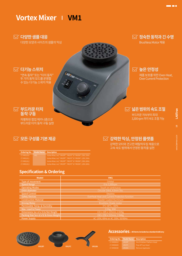 -다양한 샘플 대응 -다기능 스위치 -부드러운 터치 동작 구동 -모든 구성품 기본 제공 -정숙한 동작과 긴 수명 -높은 안정성 -넓은 범위의 속도 조절 -강력한 믹싱, 안정된 플랫폼
