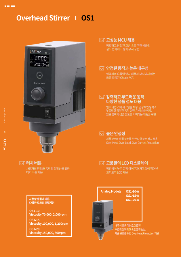-고성능 MCU 채용 -안정된 동작과 높은 내구성 -강력하고 부드러운 동작 다양한 샘플 점도 대응 -높은 안정성 -터치 버튼 -고품질의 LCD 디스플레이